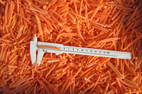 3. IQF frozen carrot strips: 5x5x(50-70)mm.
