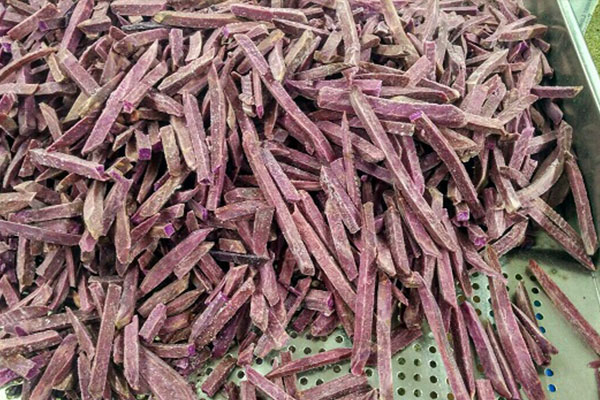 Trimmed,washed,blanched,cooled and frozen sweet potato from Chinese origin.